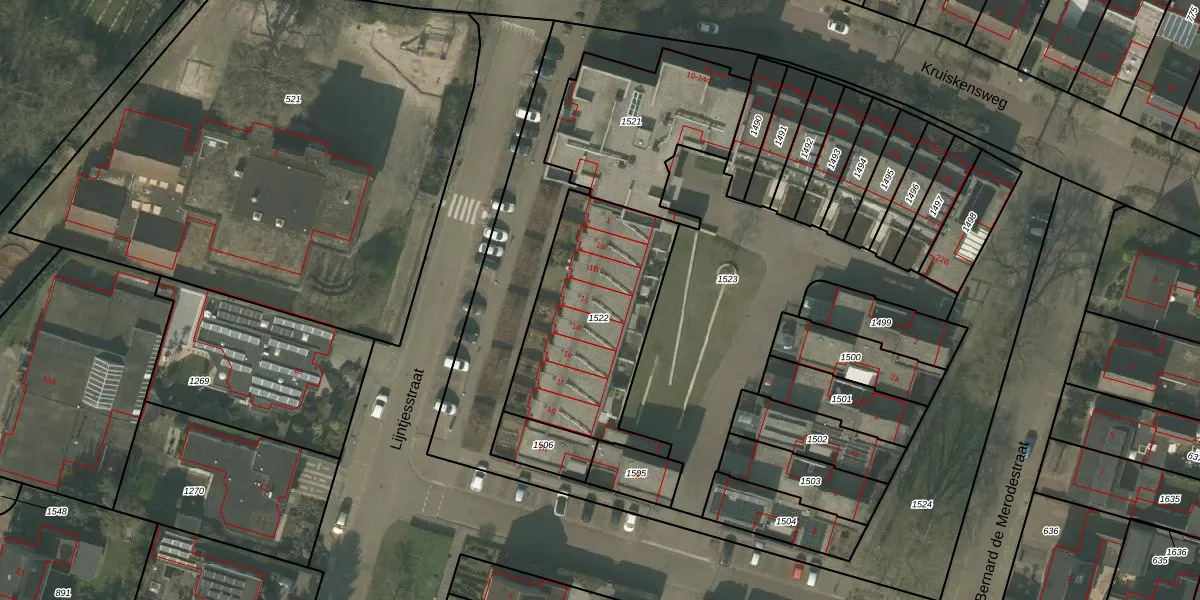 Het perceel waarop Lijntjesstraat 1-c staat heeft een oppervlakte van 760 m². Dit is een groot perceel. De perceeloppervlakte wordt geregistreerd door het Kadaster. Gedetailleerde informatie over de maten van dit perceel kunt u vinden in het rapport Kadastrale kaart met maatvoering van Lijntjesstraat 1-c.