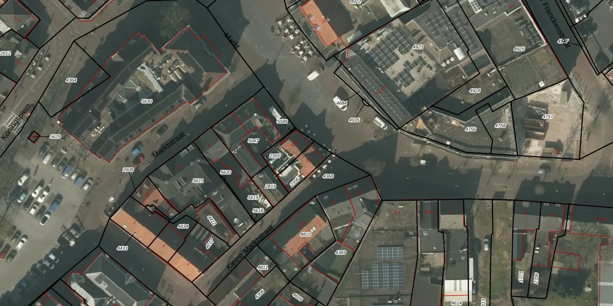 Het perceel waarop Markt 8 staat heeft een oppervlakte van 117 m². Dit is een middelgroot perceel. De perceeloppervlakte wordt geregistreerd door het Kadaster. Gedetailleerde informatie over de maten van dit perceel kunt u vinden in het rapport Kadastrale kaart met maatvoering van Markt 8.