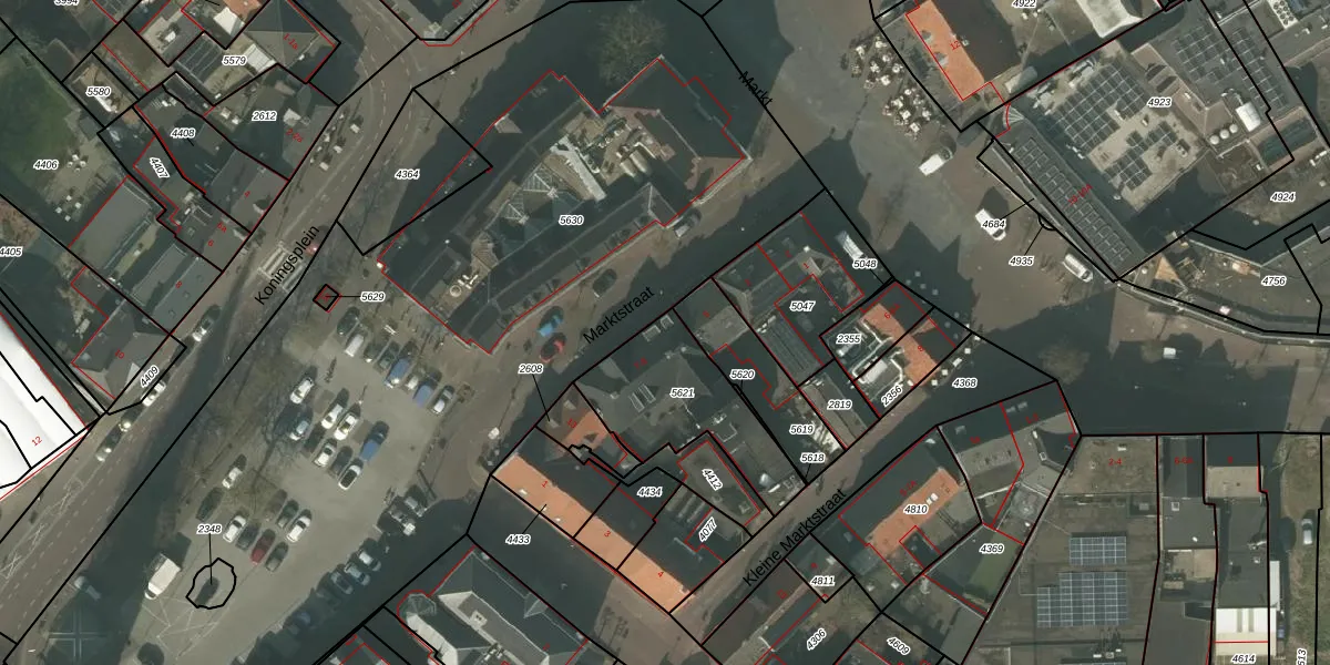 Het perceel waarop Marktstraat 7 staat heeft een oppervlakte van 444 m². Dit is een groot perceel. De perceeloppervlakte wordt geregistreerd door het Kadaster. Gedetailleerde informatie over de maten van dit perceel kunt u vinden in het rapport Kadastrale kaart met maatvoering van Marktstraat 7.