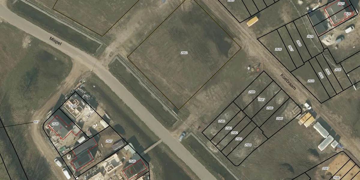 Het perceel waarop Mispel 67 staat heeft een oppervlakte van 2000 m². Dit is een zeer groot perceel. De perceeloppervlakte wordt geregistreerd door het Kadaster. Gedetailleerde informatie over de maten van dit perceel kunt u vinden in het rapport Kadastrale kaart met maatvoering van Mispel 67.