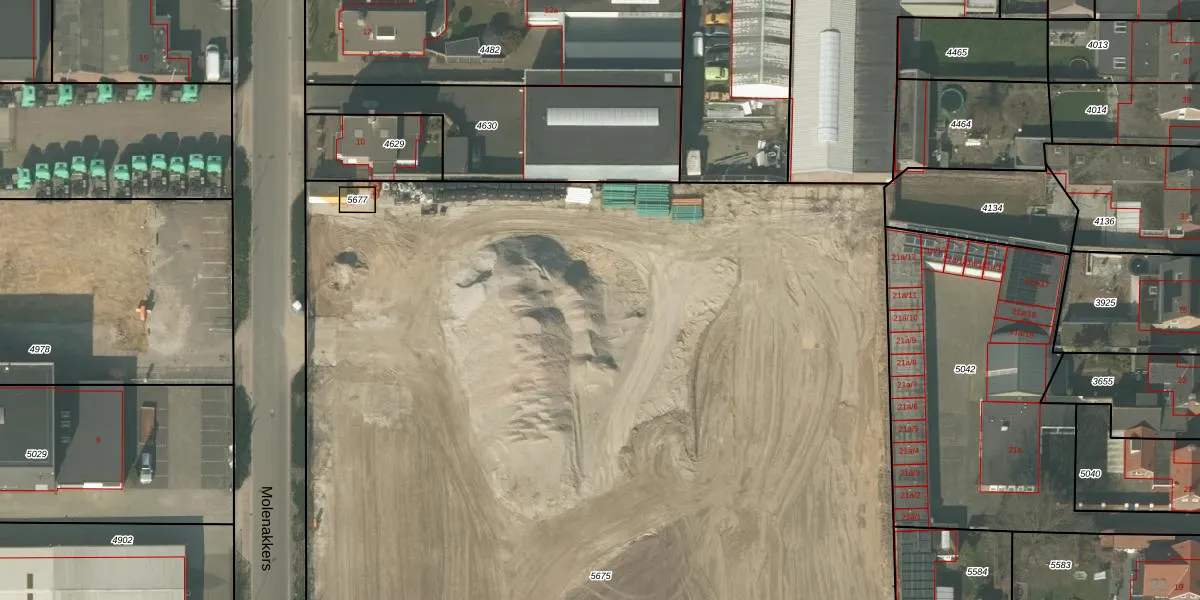 Het perceel waarop Molenakkers 2-m staat heeft een oppervlakte van 1,3 ha. Dit is een zeer groot perceel. De perceeloppervlakte wordt geregistreerd door het Kadaster. Gedetailleerde informatie over de maten van dit perceel kunt u vinden in het rapport Kadastrale kaart met maatvoering van Molenakkers 2-m.