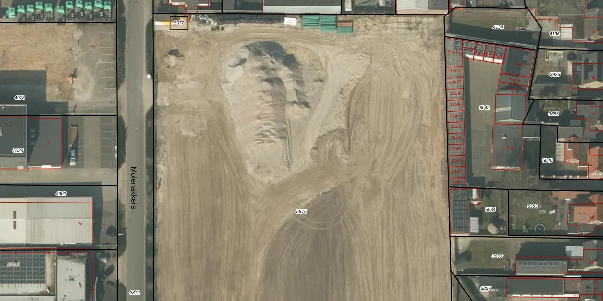 Het perceel waarop Molenakkers 2-s staat heeft een oppervlakte van 1,3 ha. Dit is een zeer groot perceel. De perceeloppervlakte wordt geregistreerd door het Kadaster. Gedetailleerde informatie over de maten van dit perceel kunt u vinden in het rapport Kadastrale kaart met maatvoering van Molenakkers 2-s.