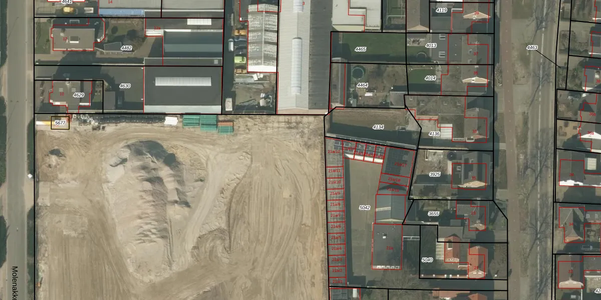 Het perceel waarop Molenakkers 4-m staat heeft een oppervlakte van 1,3 ha. Dit is een zeer groot perceel. De perceeloppervlakte wordt geregistreerd door het Kadaster. Gedetailleerde informatie over de maten van dit perceel kunt u vinden in het rapport Kadastrale kaart met maatvoering van Molenakkers 4-m.