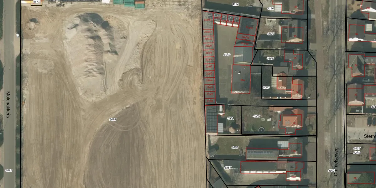 Het perceel waarop Molenakkers 4-w staat heeft een oppervlakte van 1,3 ha. Dit is een zeer groot perceel. De perceeloppervlakte wordt geregistreerd door het Kadaster. Gedetailleerde informatie over de maten van dit perceel kunt u vinden in het rapport Kadastrale kaart met maatvoering van Molenakkers 4-w.