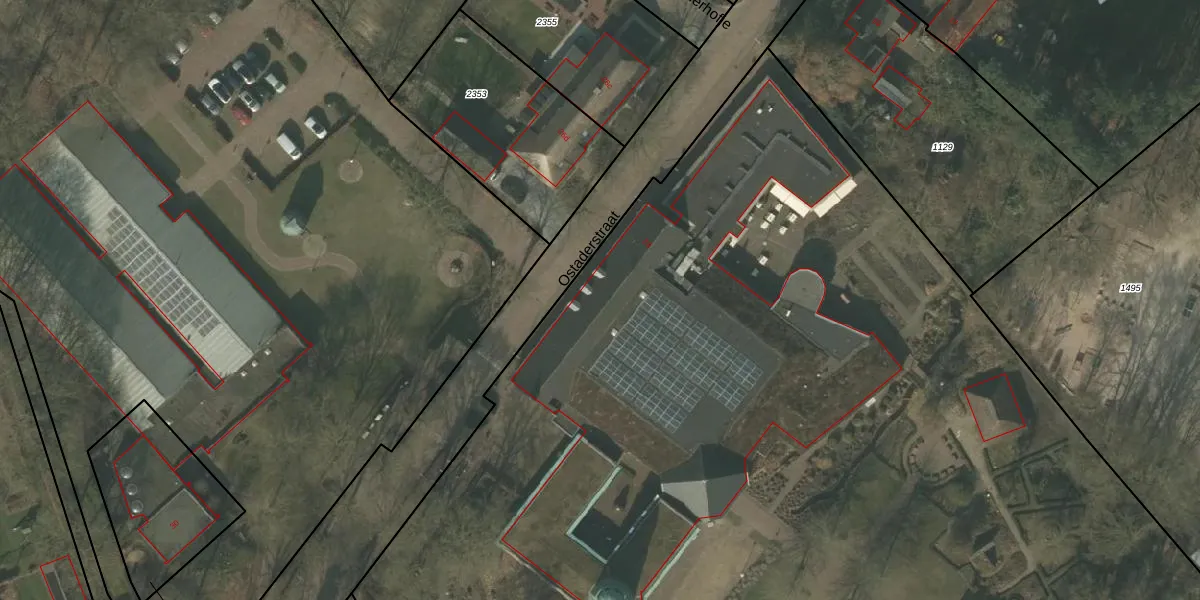 Het perceel waarop Ostaderstraat 23 staat heeft een oppervlakte van 2,3 ha. Dit is een zeer groot perceel. De perceeloppervlakte wordt geregistreerd door het Kadaster. Gedetailleerde informatie over de maten van dit perceel kunt u vinden in het rapport Kadastrale kaart met maatvoering van Ostaderstraat 23.