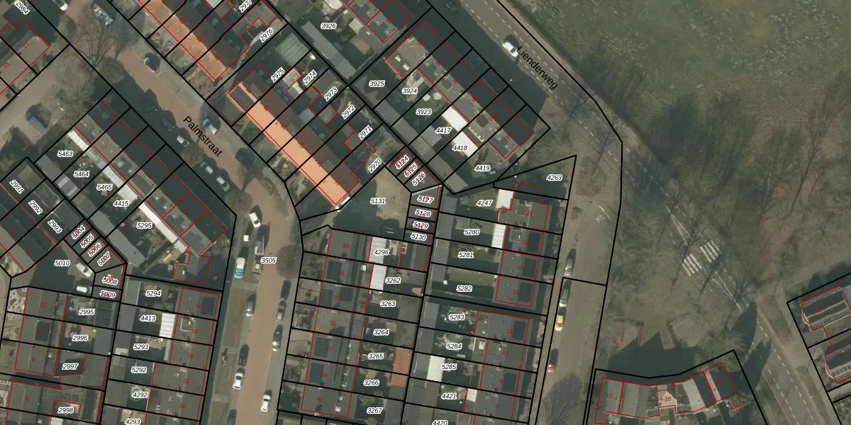 Het perceel waarop Palmstraat 27-e staat heeft een oppervlakte van 21 m². Dit is een klein perceel. De perceeloppervlakte wordt geregistreerd door het Kadaster. Gedetailleerde informatie over de maten van dit perceel kunt u vinden in het rapport Kadastrale kaart met maatvoering van Palmstraat 27-e.