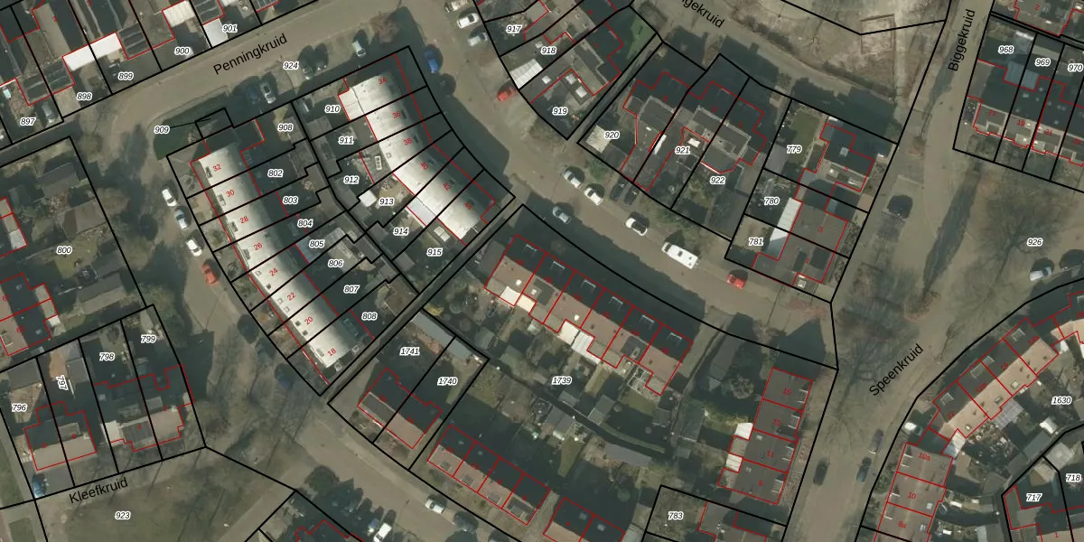 Het perceel waarop Penningkruid 48 staat heeft een oppervlakte van 3071 m². Dit is een zeer groot perceel. De perceeloppervlakte wordt geregistreerd door het Kadaster. Gedetailleerde informatie over de maten van dit perceel kunt u vinden in het rapport Kadastrale kaart met maatvoering van Penningkruid 48.