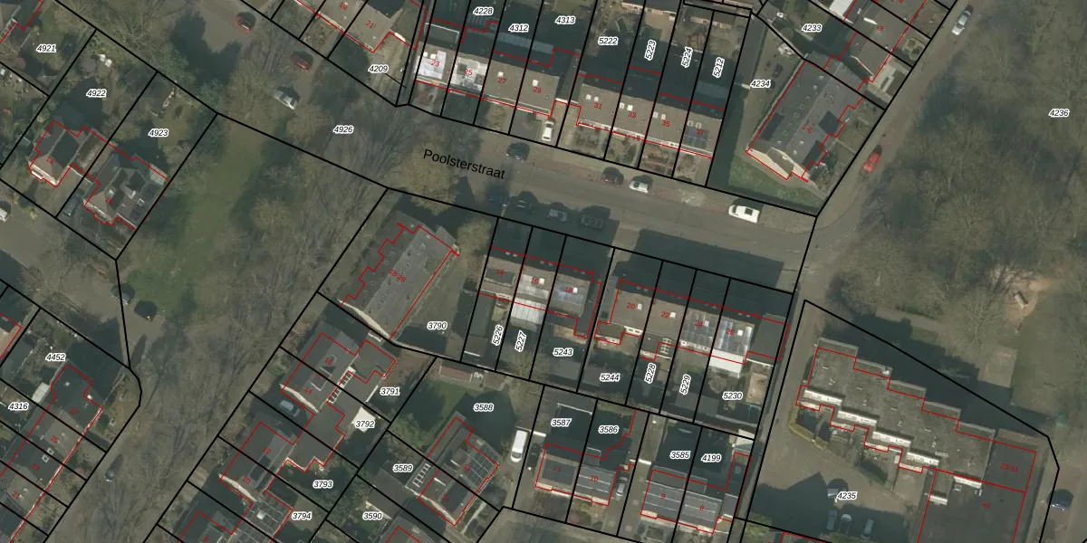 Gebruik de zoekbalk of klik op een perceel voor informatie over de adressen binnen dit perceel.