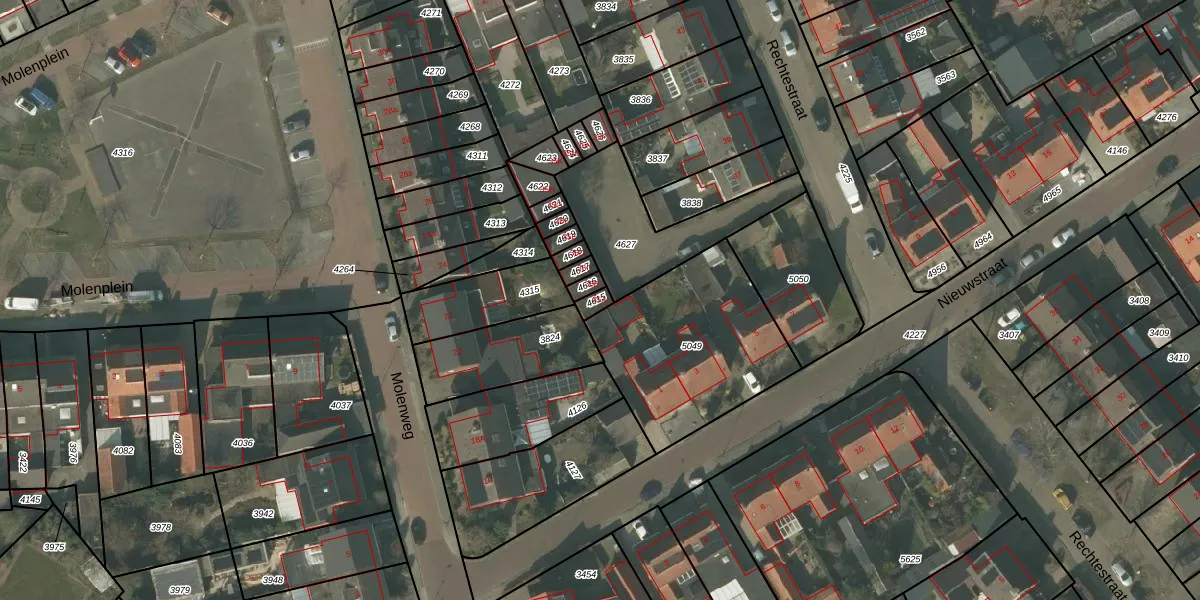 Gebruik de zoekbalk of klik op een perceel voor informatie over de adressen binnen dit perceel.