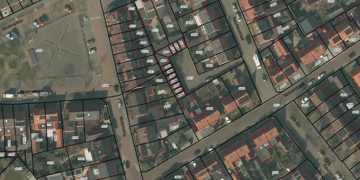 Rechtestraat 35-b is gelegen op kadastraal perceel ATN01G4616. Deze kadastrale aanduiding is uniek en wordt gebruikt door het Kadaster om eigendomsrechten en andere zakelijke rechten vast te leggen. Het perceel maakt onderdeel uit van de kadastrale gemeente Asten.