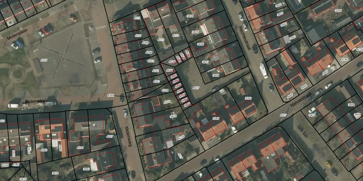 Gebruik de zoekbalk of klik op een perceel voor informatie over de adressen binnen dit perceel.