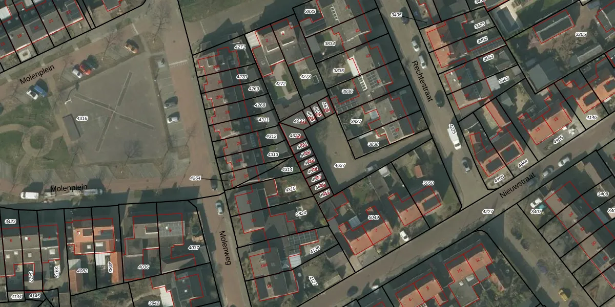 Gebruik de zoekbalk of klik op een perceel voor informatie over de adressen binnen dit perceel.