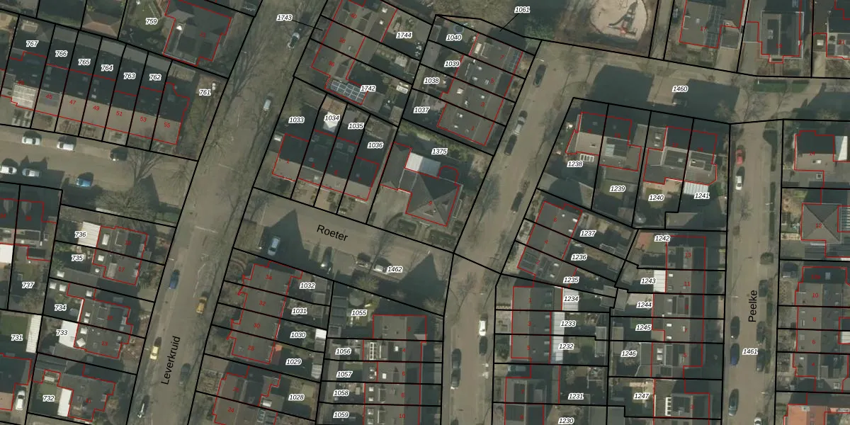Het perceel waarop Roeter 9 staat heeft een oppervlakte van 576 m². Dit is een groot perceel. De perceeloppervlakte wordt geregistreerd door het Kadaster. Gedetailleerde informatie over de maten van dit perceel kunt u vinden in het rapport Kadastrale kaart met maatvoering van Roeter 9.