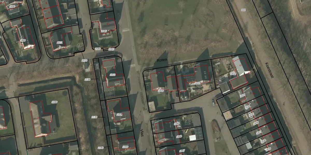 Het perceel waarop Roten 2 staat heeft een oppervlakte van 545 m². Dit is een groot perceel. De perceeloppervlakte wordt geregistreerd door het Kadaster. Gedetailleerde informatie over de maten van dit perceel kunt u vinden in het rapport Kadastrale kaart met maatvoering van Roten 2.