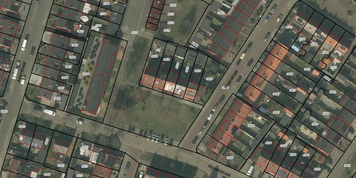 Rozenstraat 13 is gelegen op kadastraal perceel ATN01C5529. Deze kadastrale aanduiding is uniek en wordt gebruikt door het Kadaster om eigendomsrechten en andere zakelijke rechten vast te leggen. Het perceel maakt onderdeel uit van de kadastrale gemeente Asten.