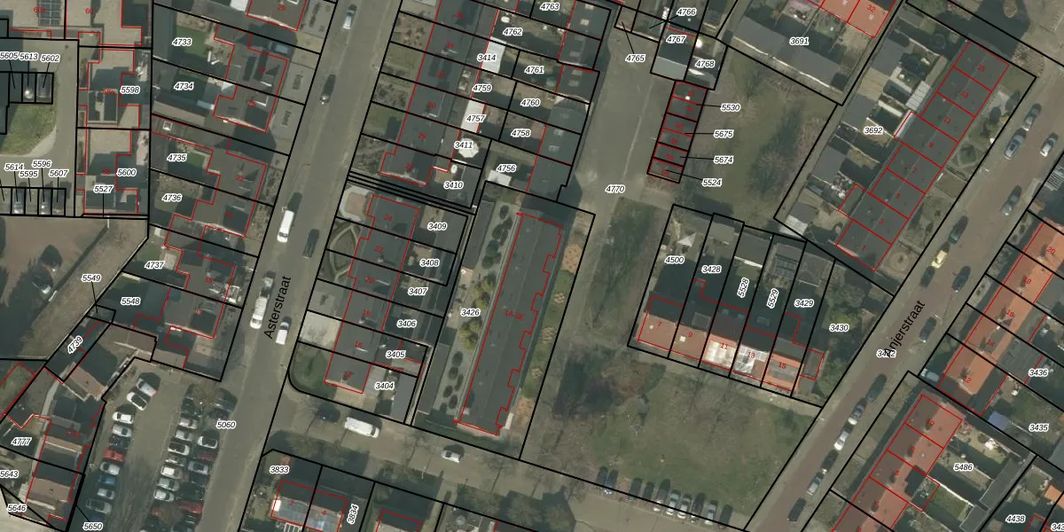 Het perceel waarop het adres ligt is ATN01-C-3426. De afkorting 'ATN01' staat voor kadastrale gemeente Asten. De gemiddelde perceelgrootte in Asten is 6632,51 m². Dit perceel is kleiner: de perceeloppervlakte bedraagt 1032 m². Het kleinste perceel in de kadastrale gemeente is 0 m² groot. De grootste perceeloppervlakte is 3,95 km². Er zijn 10 adressen aanwezig op het perceel. In de Basisregistratie Kadaster (BRK) werden de grenzen van het perceel geregistreerd op 10-01-2008.