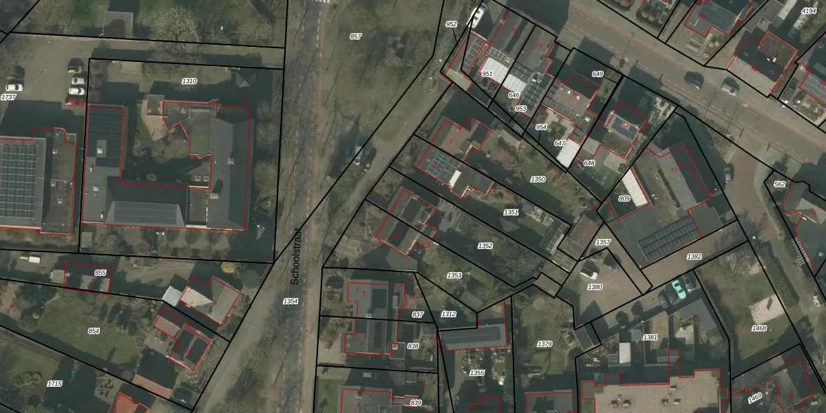 Het perceel waarop Schoolstraat 3 staat heeft een oppervlakte van 455 m². Dit is een groot perceel. De perceeloppervlakte wordt geregistreerd door het Kadaster. Gedetailleerde informatie over de maten van dit perceel kunt u vinden in het rapport Kadastrale kaart met maatvoering van Schoolstraat 3.