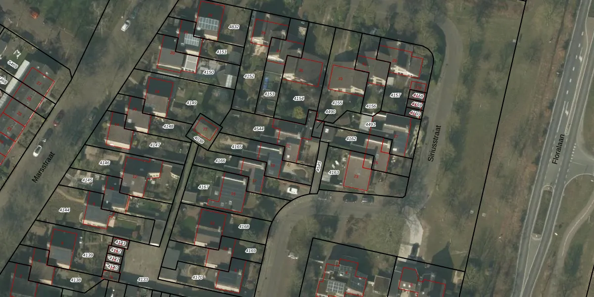 Het perceel waarop Siriusstraat 21 staat heeft een oppervlakte van 336 m². Dit is een groot perceel. De perceeloppervlakte wordt geregistreerd door het Kadaster. Gedetailleerde informatie over de maten van dit perceel kunt u vinden in het rapport Kadastrale kaart met maatvoering van Siriusstraat 21.