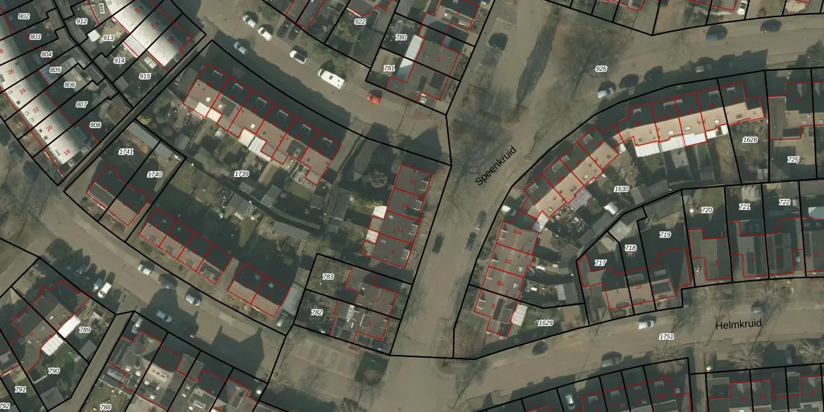Het perceel waarop Speenkruid 13 staat heeft een oppervlakte van 3071 m². Dit is een zeer groot perceel. De perceeloppervlakte wordt geregistreerd door het Kadaster. Gedetailleerde informatie over de maten van dit perceel kunt u vinden in het rapport Kadastrale kaart met maatvoering van Speenkruid 13.