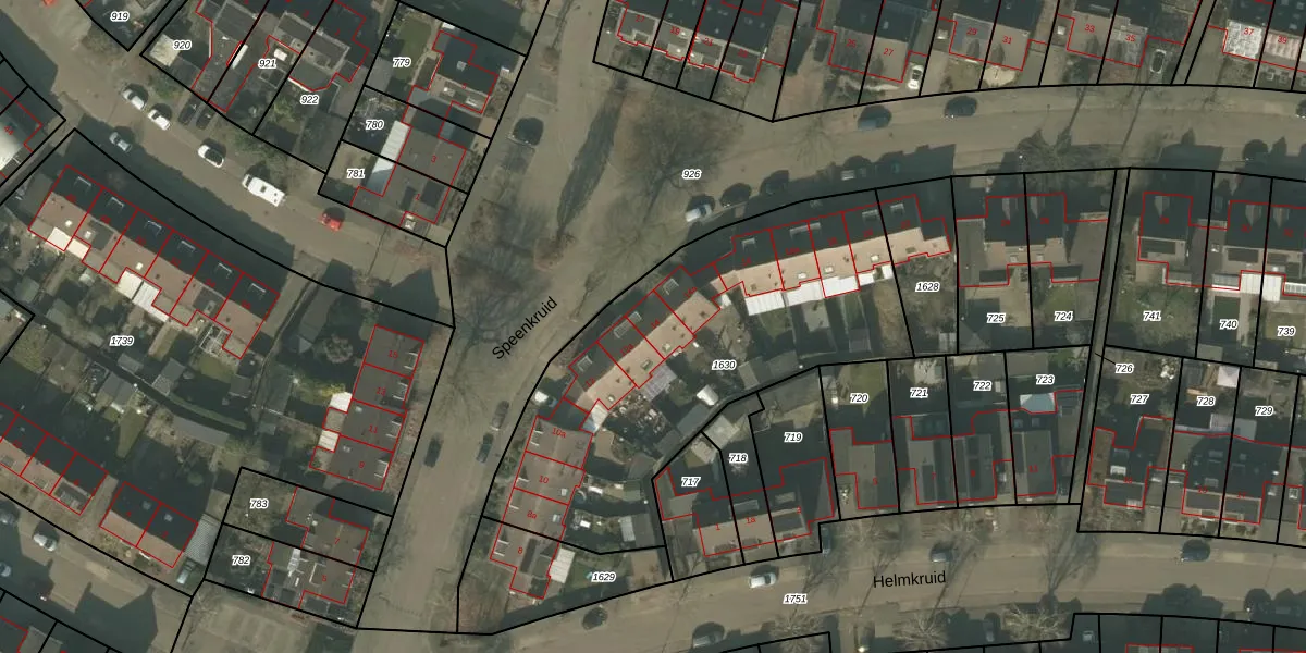 Het perceel waarop Speenkruid 14 staat heeft een oppervlakte van 1755 m². Dit is een zeer groot perceel. De perceeloppervlakte wordt geregistreerd door het Kadaster. Gedetailleerde informatie over de maten van dit perceel kunt u vinden in het rapport Kadastrale kaart met maatvoering van Speenkruid 14.