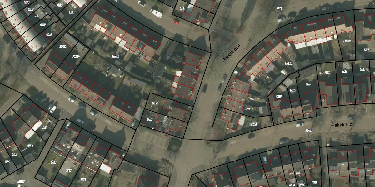 Het perceel waarop Speenkruid 9 staat heeft een oppervlakte van 3071 m². Dit is een zeer groot perceel. De perceeloppervlakte wordt geregistreerd door het Kadaster. Gedetailleerde informatie over de maten van dit perceel kunt u vinden in het rapport Kadastrale kaart met maatvoering van Speenkruid 9.