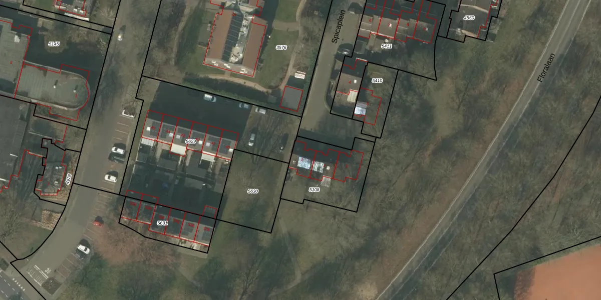 Het perceel waarop Spicaplein 1 staat heeft een oppervlakte van 555 m². Dit is een groot perceel. De perceeloppervlakte wordt geregistreerd door het Kadaster. Gedetailleerde informatie over de maten van dit perceel kunt u vinden in het rapport Kadastrale kaart met maatvoering van Spicaplein 1.