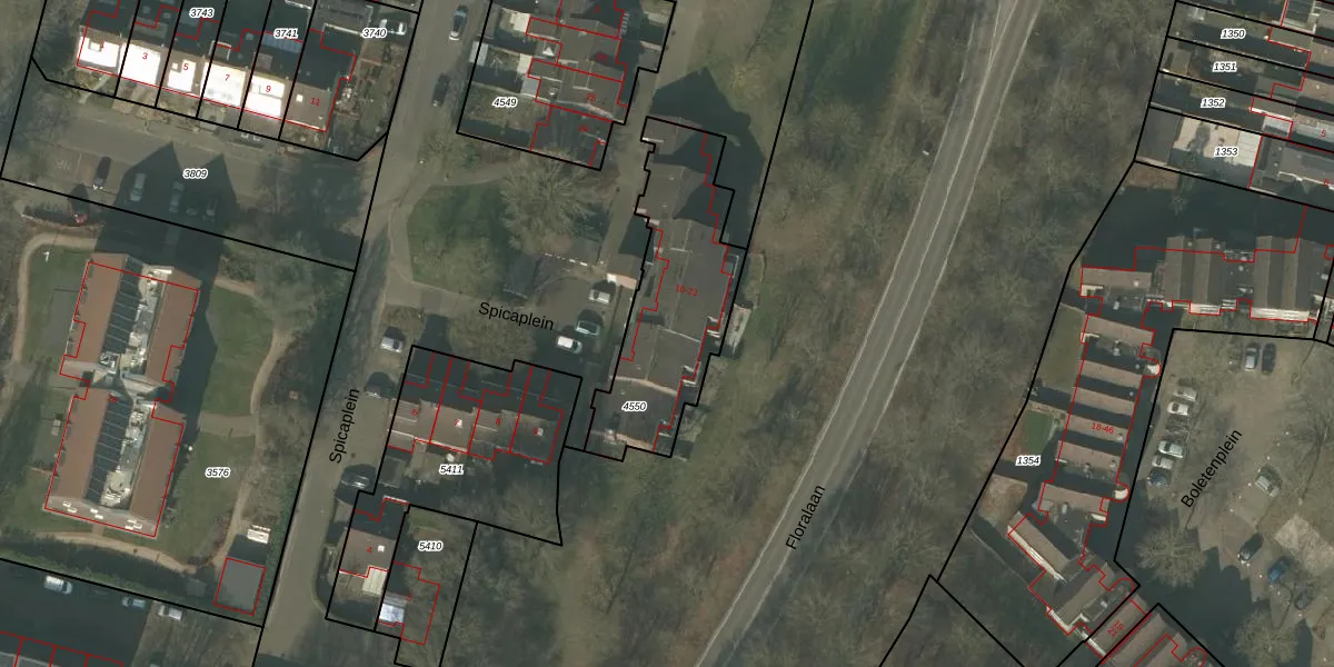 Het perceel waarop Spicaplein 15 staat heeft een oppervlakte van 662 m². Dit is een groot perceel. De perceeloppervlakte wordt geregistreerd door het Kadaster. Gedetailleerde informatie over de maten van dit perceel kunt u vinden in het rapport Kadastrale kaart met maatvoering van Spicaplein 15.