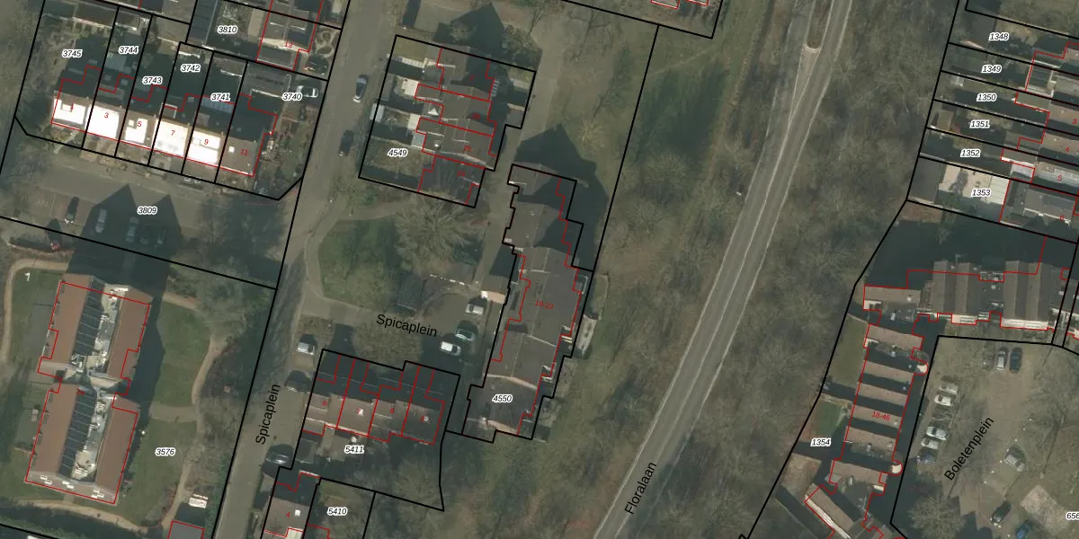 Het perceel waarop Spicaplein 19 staat heeft een oppervlakte van 662 m². Dit is een groot perceel. De perceeloppervlakte wordt geregistreerd door het Kadaster. Gedetailleerde informatie over de maten van dit perceel kunt u vinden in het rapport Kadastrale kaart met maatvoering van Spicaplein 19.
