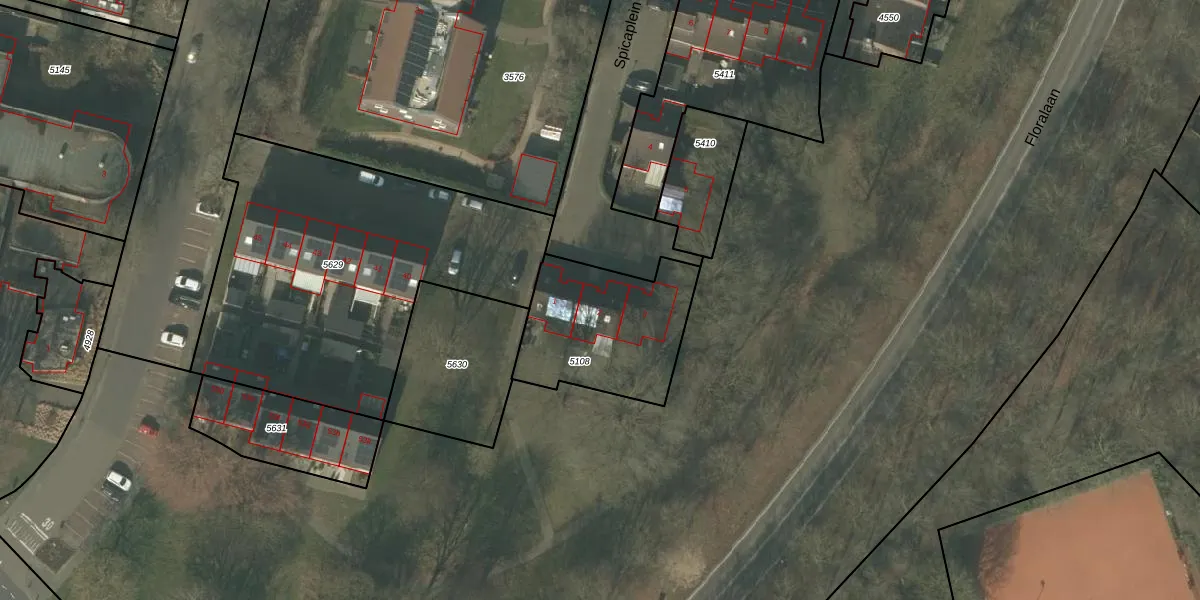 Het perceel waarop Spicaplein 2 staat heeft een oppervlakte van 555 m². Dit is een groot perceel. De perceeloppervlakte wordt geregistreerd door het Kadaster. Gedetailleerde informatie over de maten van dit perceel kunt u vinden in het rapport Kadastrale kaart met maatvoering van Spicaplein 2.