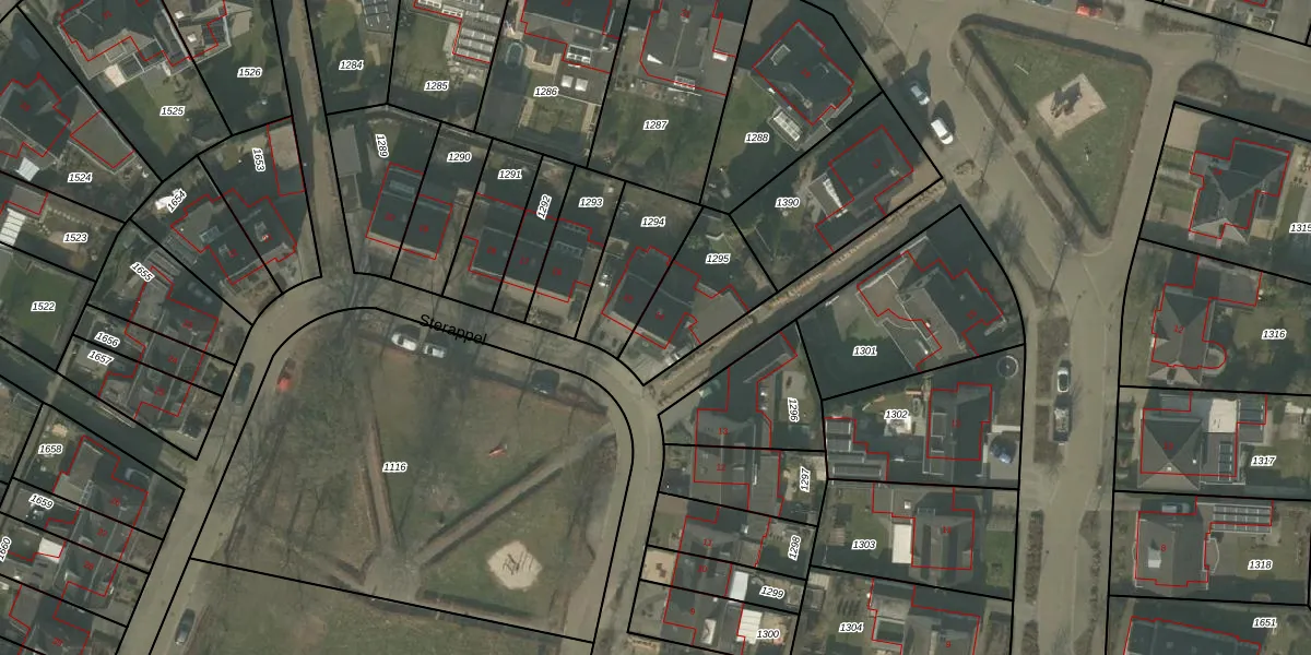 Het perceel waarop Sterappel 14 staat heeft een oppervlakte van 305 m². Dit is een groot perceel. De perceeloppervlakte wordt geregistreerd door het Kadaster. Gedetailleerde informatie over de maten van dit perceel kunt u vinden in het rapport Kadastrale kaart met maatvoering van Sterappel 14.