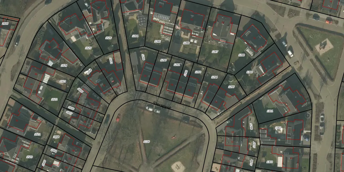 Sterappel 18 is gelegen op kadastraal perceel ATN01N1291. Deze kadastrale aanduiding is uniek en wordt gebruikt door het Kadaster om eigendomsrechten en andere zakelijke rechten vast te leggen. Het perceel maakt onderdeel uit van de kadastrale gemeente Asten.