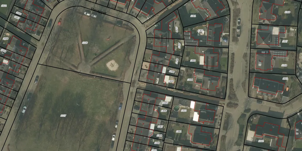 Sterappel 9 is gelegen op kadastraal perceel ATN01N1300. Deze kadastrale aanduiding is uniek en wordt gebruikt door het Kadaster om eigendomsrechten en andere zakelijke rechten vast te leggen. Het perceel maakt onderdeel uit van de kadastrale gemeente Asten.