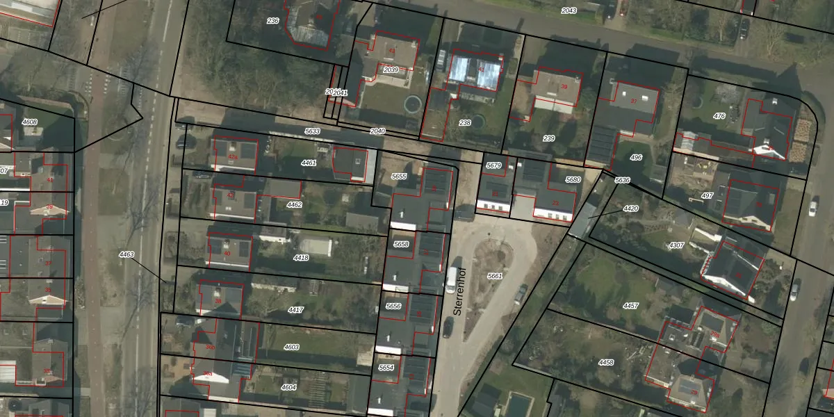Het perceel waarop Sterrenhof 19 staat heeft een oppervlakte van 317 m². Dit is een groot perceel. De perceeloppervlakte wordt geregistreerd door het Kadaster. Gedetailleerde informatie over de maten van dit perceel kunt u vinden in het rapport Kadastrale kaart met maatvoering van Sterrenhof 19.
