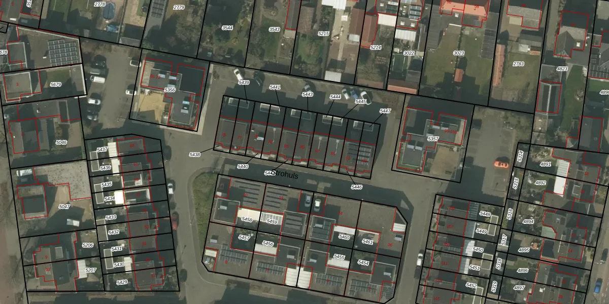 Het perceel waarop Strohuls 85 staat heeft een oppervlakte van 95 m². Dit is een klein perceel. De perceeloppervlakte wordt geregistreerd door het Kadaster. Gedetailleerde informatie over de maten van dit perceel kunt u vinden in het rapport Kadastrale kaart met maatvoering van Strohuls 85.