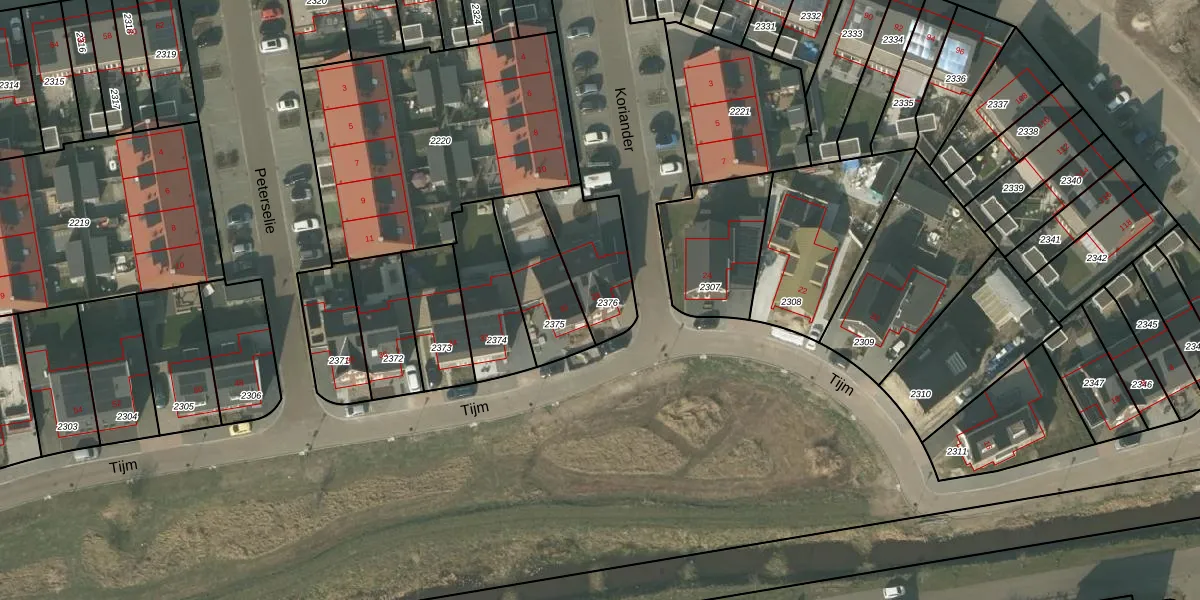Het perceel waarop Tijm 28 staat heeft een oppervlakte van 260 m². Dit is een middelgroot perceel. De perceeloppervlakte wordt geregistreerd door het Kadaster. Gedetailleerde informatie over de maten van dit perceel kunt u vinden in het rapport Kadastrale kaart met maatvoering van Tijm 28.