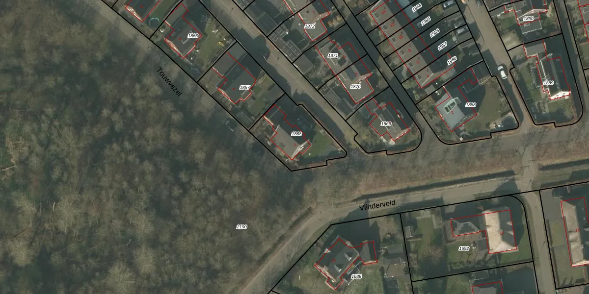 Touwvezel 2 is gelegen op kadastraal perceel ATN01N1868. Deze kadastrale aanduiding is uniek en wordt gebruikt door het Kadaster om eigendomsrechten en andere zakelijke rechten vast te leggen. Het perceel maakt onderdeel uit van de kadastrale gemeente Asten.
