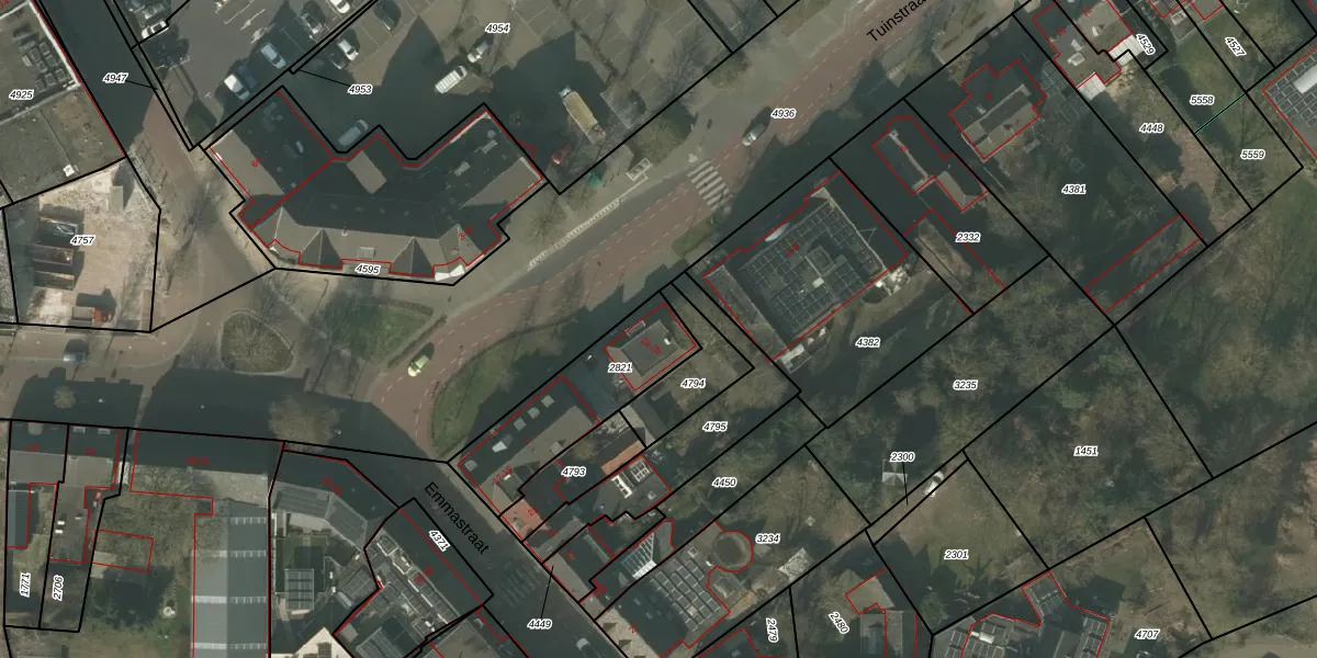 Het perceel waarop Tuinstraat 2-b staat heeft een oppervlakte van 436 m². Dit is een groot perceel. De perceeloppervlakte wordt geregistreerd door het Kadaster. Gedetailleerde informatie over de maten van dit perceel kunt u vinden in het rapport Kadastrale kaart met maatvoering van Tuinstraat 2-b.
