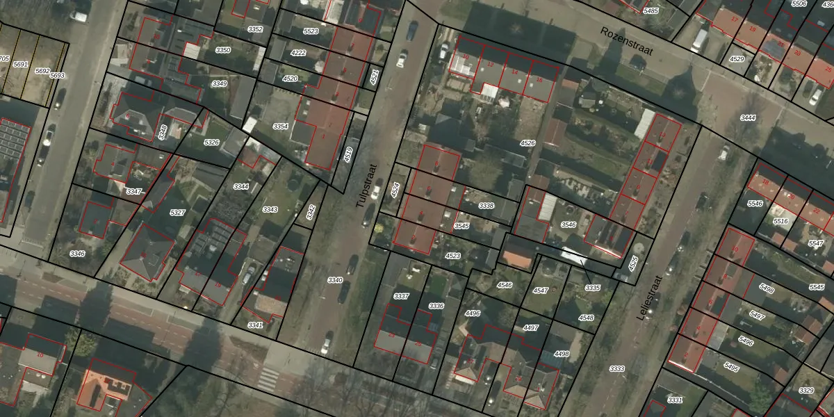 Het perceel waarop Tulpstraat 4 staat heeft een oppervlakte van 164 m². Dit is een middelgroot perceel. De perceeloppervlakte wordt geregistreerd door het Kadaster. Gedetailleerde informatie over de maten van dit perceel kunt u vinden in het rapport Kadastrale kaart met maatvoering van Tulpstraat 4.