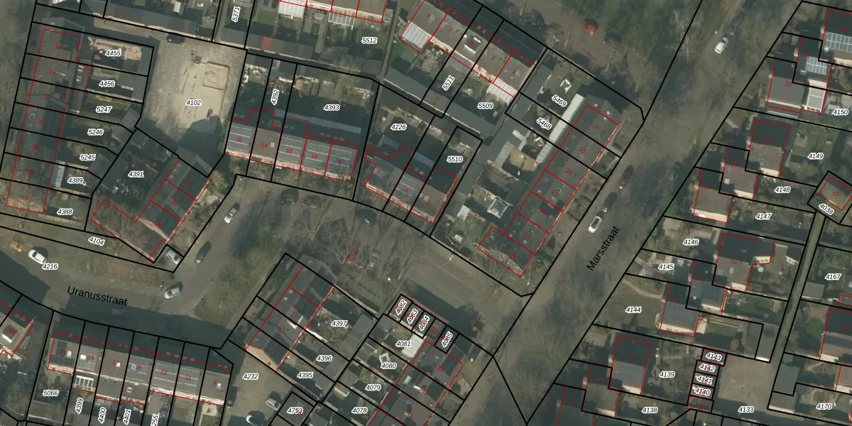 Gebruik de zoekbalk of klik op een perceel voor informatie over de adressen binnen dit perceel.