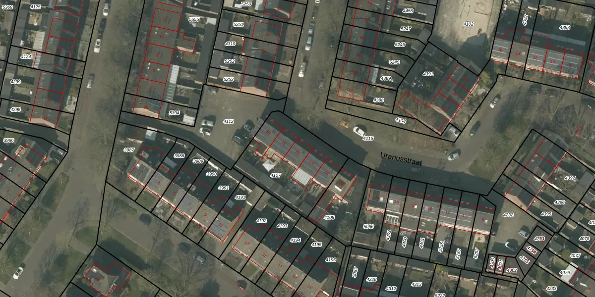 Het perceel waarop Uranusstraat 29 staat heeft een oppervlakte van 755 m². Dit is een groot perceel. De perceeloppervlakte wordt geregistreerd door het Kadaster. Gedetailleerde informatie over de maten van dit perceel kunt u vinden in het rapport Kadastrale kaart met maatvoering van Uranusstraat 29.