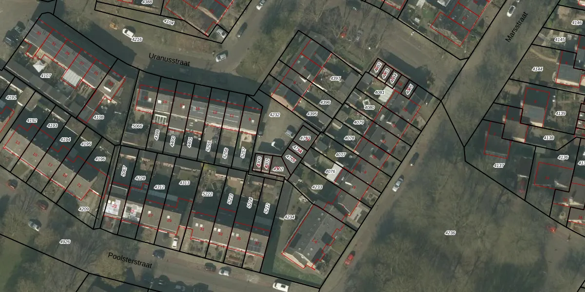 Uranusstraat 7-b is gelegen op kadastraal perceel ATN01C4754. Deze kadastrale aanduiding is uniek en wordt gebruikt door het Kadaster om eigendomsrechten en andere zakelijke rechten vast te leggen. Het perceel maakt onderdeel uit van de kadastrale gemeente Asten.