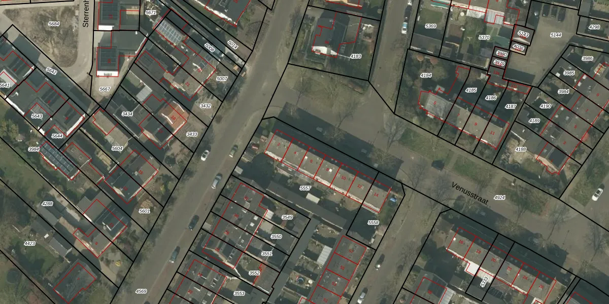 Het perceel waarop Venusstraat 4 staat heeft een oppervlakte van 2450 m². Dit is een zeer groot perceel. De perceeloppervlakte wordt geregistreerd door het Kadaster. Gedetailleerde informatie over de maten van dit perceel kunt u vinden in het rapport Kadastrale kaart met maatvoering van Venusstraat 4.