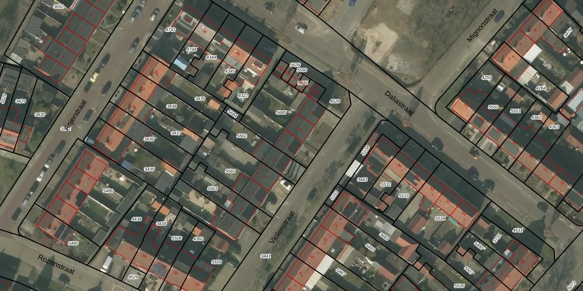 Het perceel waarop Violenstraat 11 staat heeft een oppervlakte van 647 m². Dit is een groot perceel. De perceeloppervlakte wordt geregistreerd door het Kadaster. Gedetailleerde informatie over de maten van dit perceel kunt u vinden in het rapport Kadastrale kaart met maatvoering van Violenstraat 11.