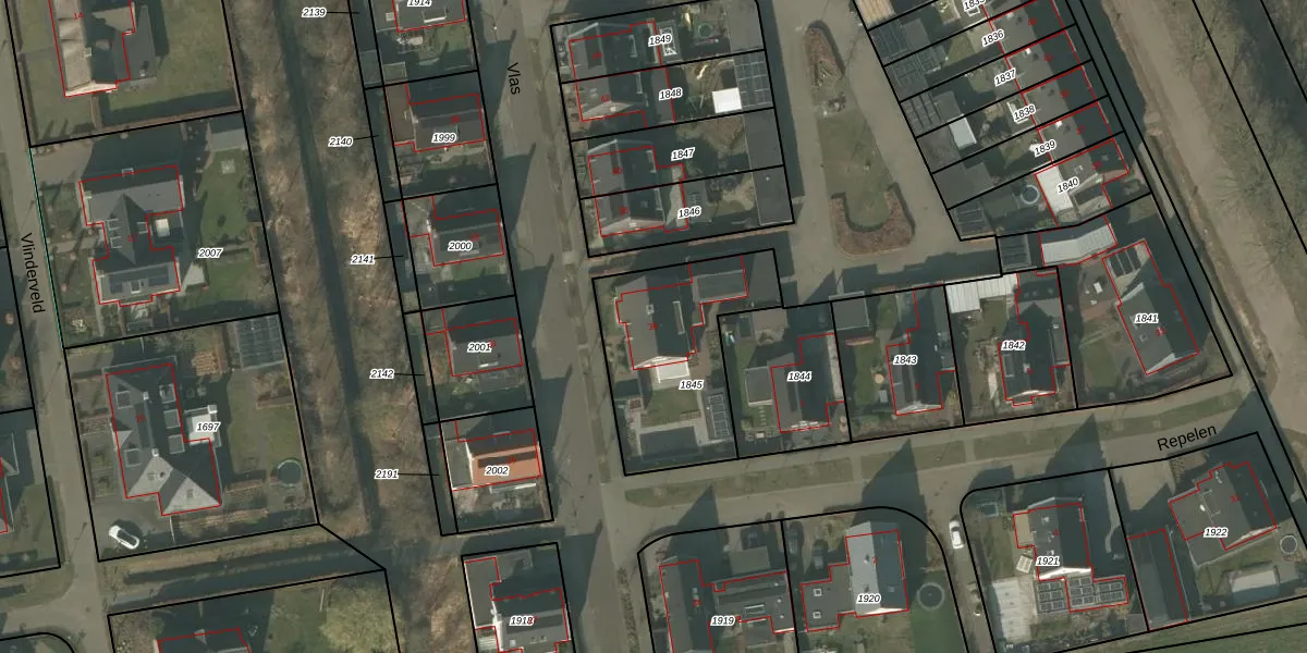 Het perceel waarop Vlas 36 staat heeft een oppervlakte van 634 m². Dit is een groot perceel. De perceeloppervlakte wordt geregistreerd door het Kadaster. Gedetailleerde informatie over de maten van dit perceel kunt u vinden in het rapport Kadastrale kaart met maatvoering van Vlas 36.