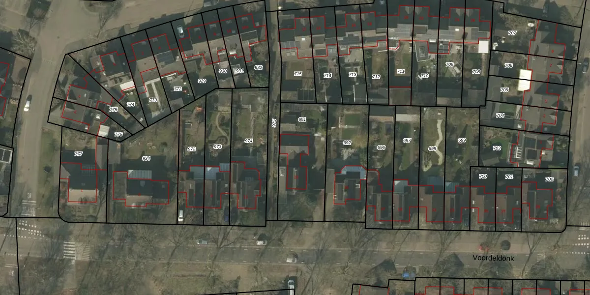 Het perceel waarop Voordeldonk 13 staat heeft een oppervlakte van 635 m². Dit is een groot perceel. De perceeloppervlakte wordt geregistreerd door het Kadaster. Gedetailleerde informatie over de maten van dit perceel kunt u vinden in het rapport Kadastrale kaart met maatvoering van Voordeldonk 13.