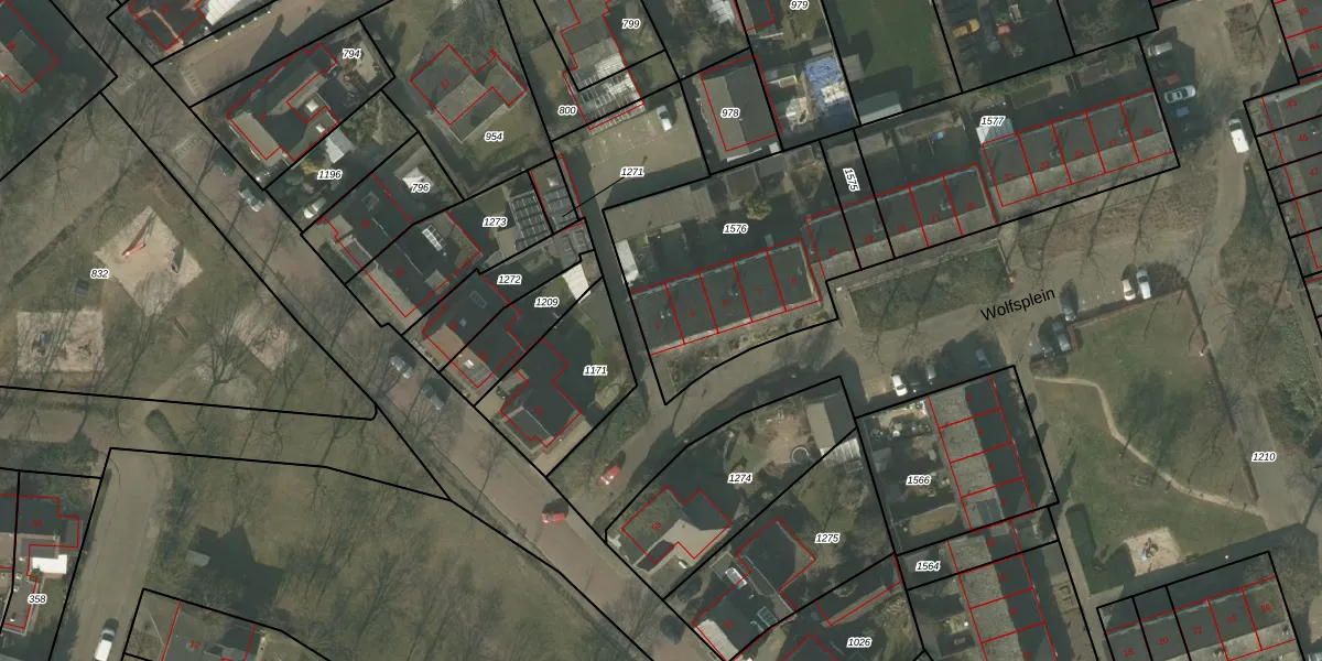 Het perceel waarop Wolfsplein 1 staat heeft een oppervlakte van 915 m². Dit is een groot perceel. De perceeloppervlakte wordt geregistreerd door het Kadaster. Gedetailleerde informatie over de maten van dit perceel kunt u vinden in het rapport Kadastrale kaart met maatvoering van Wolfsplein 1.