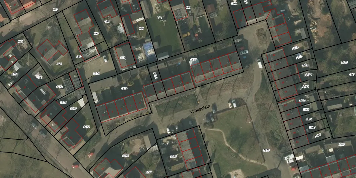 Het perceel waarop Wolfsplein 17 staat heeft een oppervlakte van 942 m². Dit is een groot perceel. De perceeloppervlakte wordt geregistreerd door het Kadaster. Gedetailleerde informatie over de maten van dit perceel kunt u vinden in het rapport Kadastrale kaart met maatvoering van Wolfsplein 17.