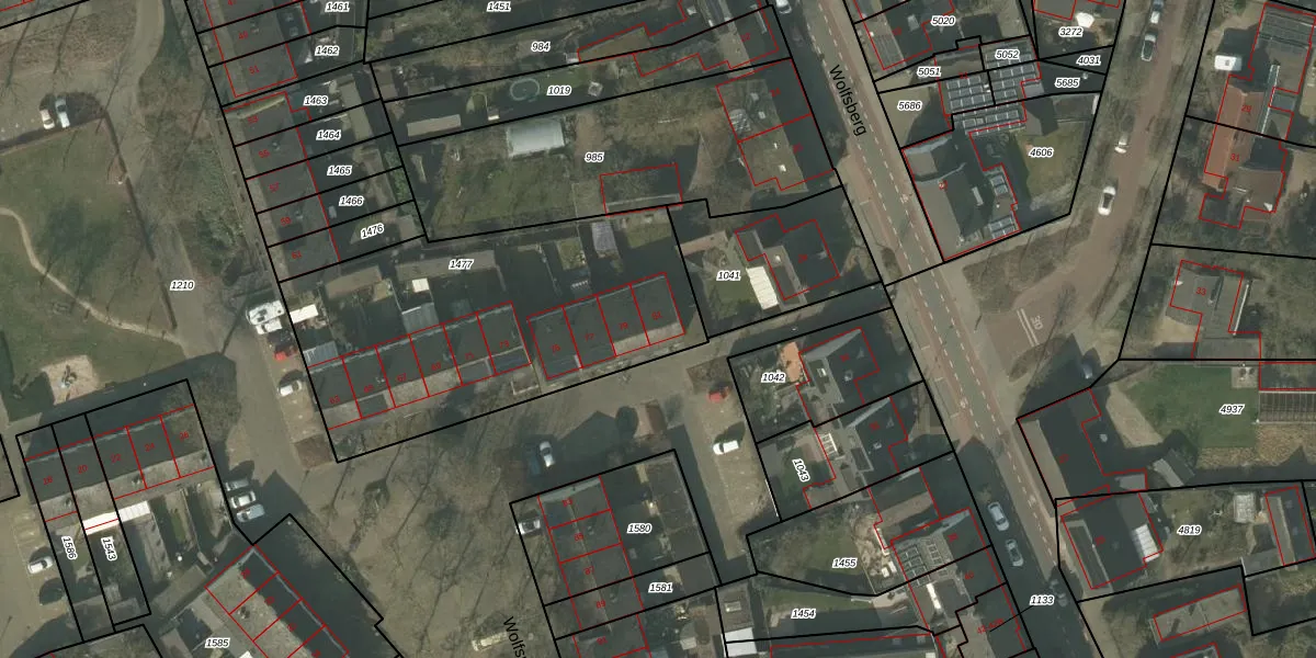 Het perceel waarop Wolfsplein 81 staat heeft een oppervlakte van 1555 m². Dit is een zeer groot perceel. De perceeloppervlakte wordt geregistreerd door het Kadaster. Gedetailleerde informatie over de maten van dit perceel kunt u vinden in het rapport Kadastrale kaart met maatvoering van Wolfsplein 81.