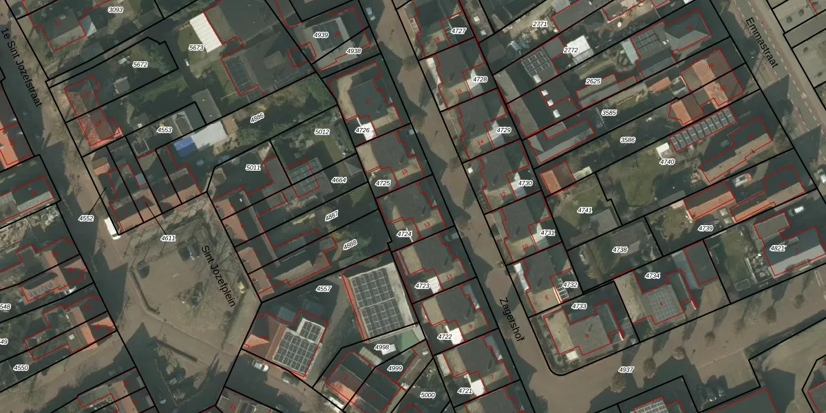Gebruik de zoekbalk of klik op een perceel voor informatie over de adressen binnen dit perceel.