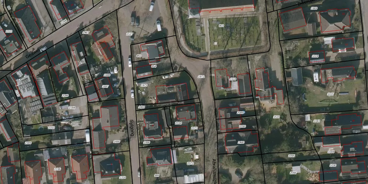 Gebruik de zoekbalk of klik op een perceel voor informatie over de adressen binnen dit perceel.